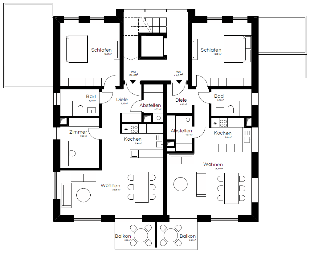 WOHNUNGSGRÖSSEN77,40 - 95,40 M²