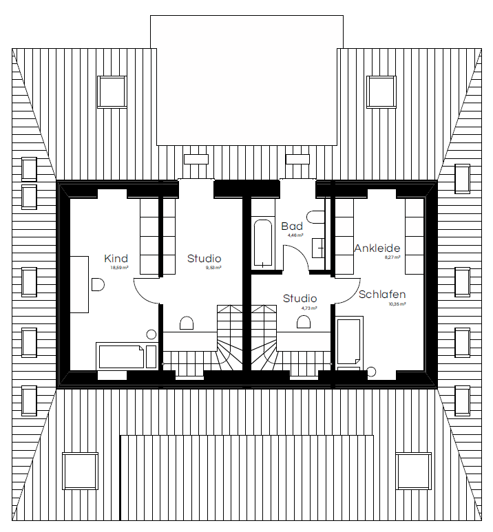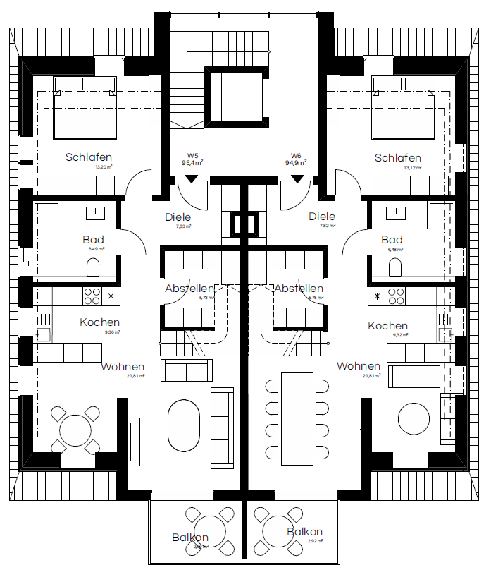 Optional kann im Dachgeschoss ein zusätzliches Badezimmer integriert werden. Großzügige bodentiefe Fenster im Wohnbereich sorgen für eine angenehme Lichtdurchflutung, während ein Balkon den Außenbereich perfekt ergänzt.