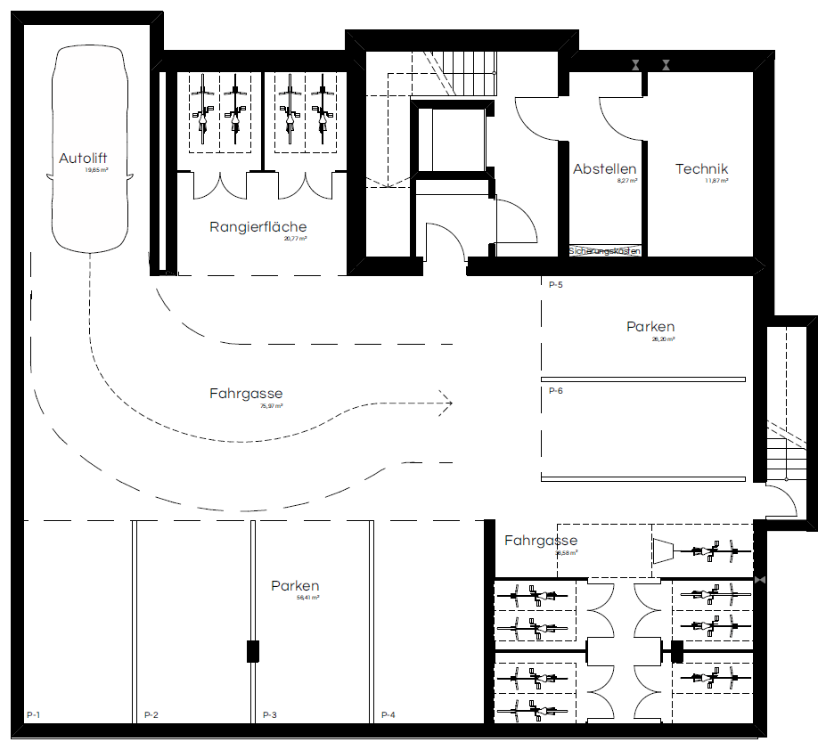 • Ein Tiefgaragenstellplatz pro Wohnung mit Auto- und Personenaufzug