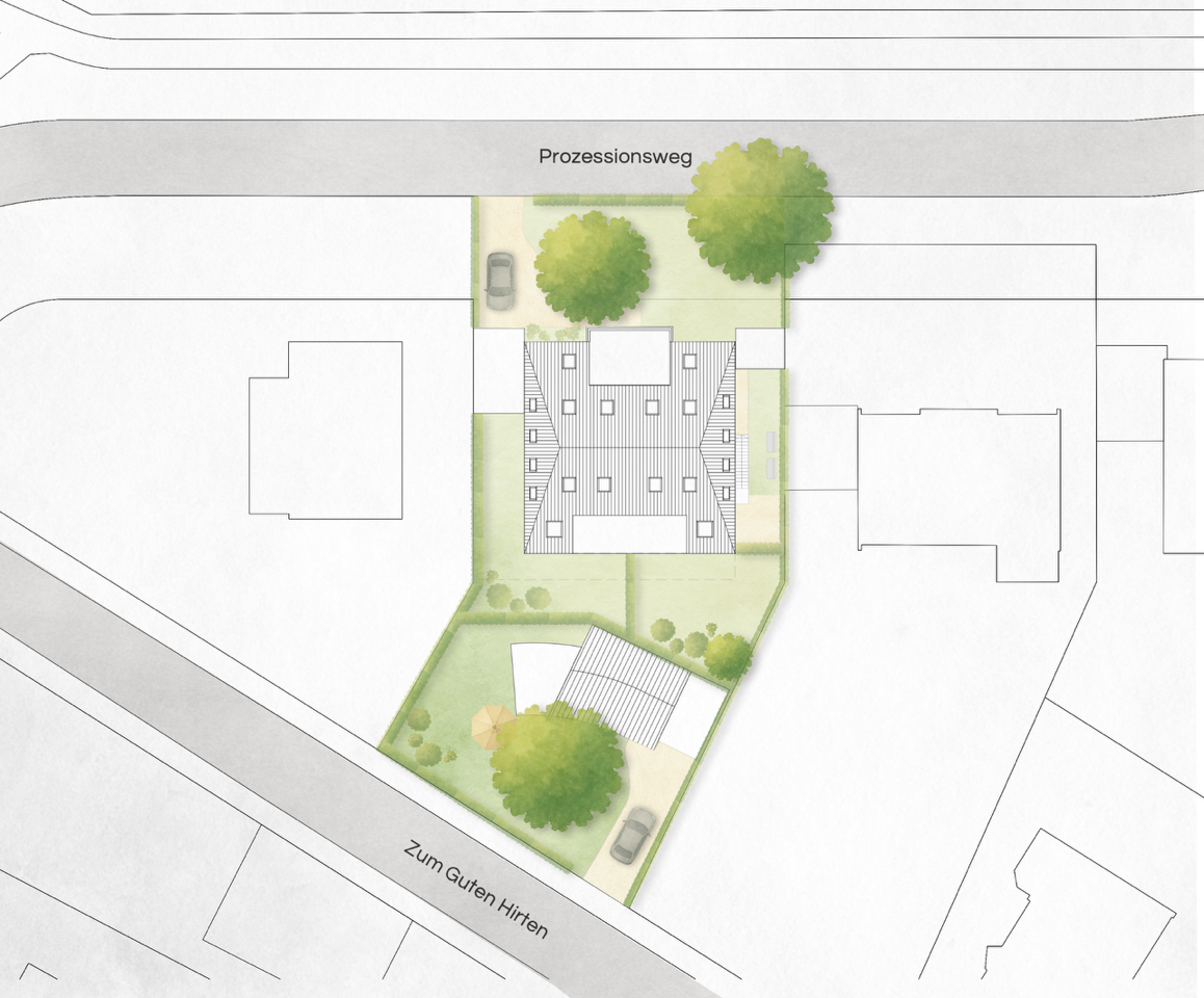 In wenigen Gehminuten erreichen Sie weitläufige Grünflächen und Spazierwege. Gleichzeitig sind Innenstadt, Einkaufsmöglichkeiten, Ärzte, Cafés und ÖPNV bequem und schnell erreichbar. Trotz der zentralen Lage bleibt der Prozessionsweg eine ruhige Wohnadresse mit exklusivem Charakter. Gepflegte Nachbarschaft, gewachsene Strukturen und eine hohe Lebensqualität machen diesen Standort besonders attraktiv für anspruchsvolle Eigennutzer und Kapitalanleger.
